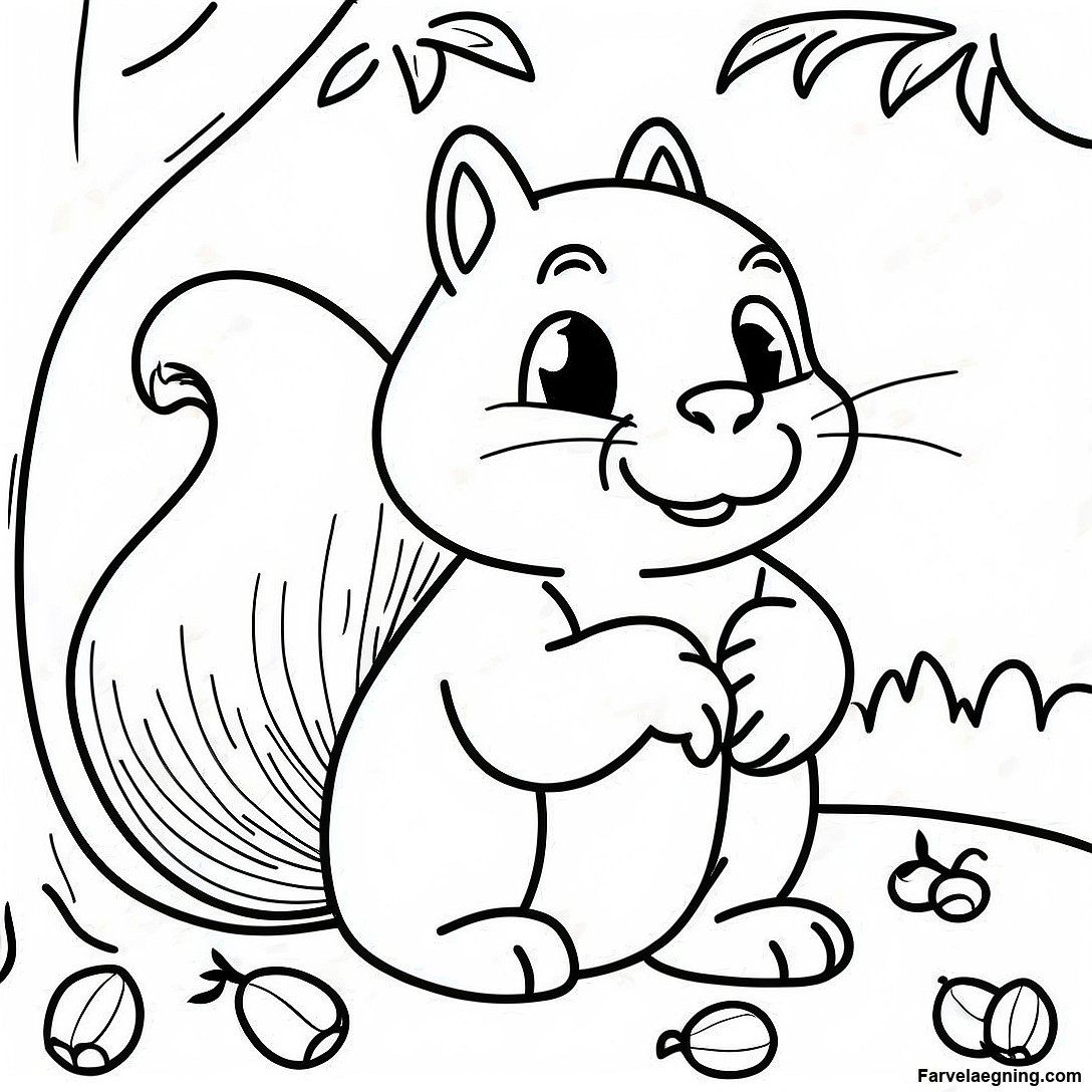 Download printbar PDF af Glad Egern Med Egeakorn Farvelægningsside