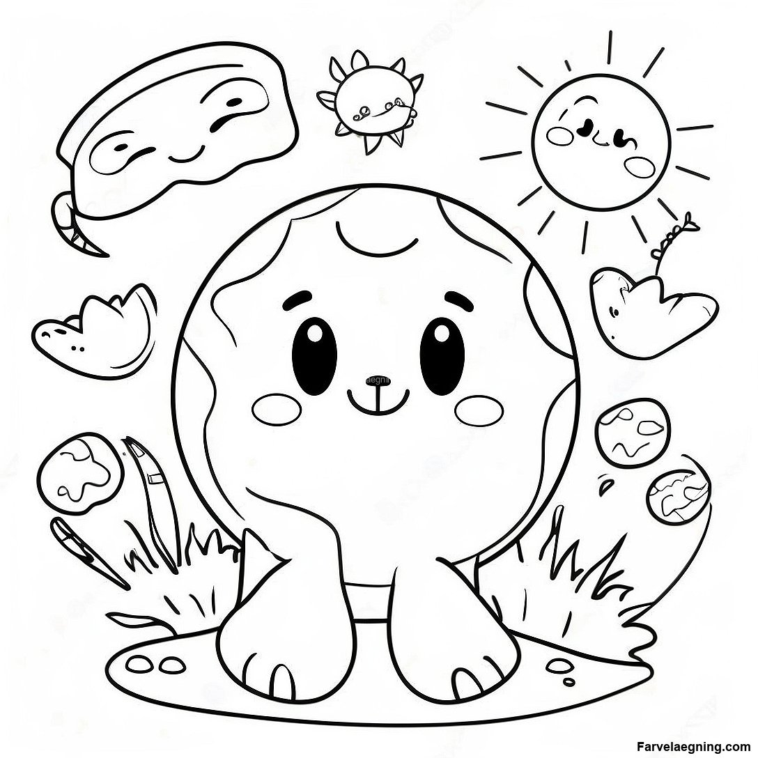 Download printbar PDF af Glad Jord Omgivet Af Dyr Farvelægningsside