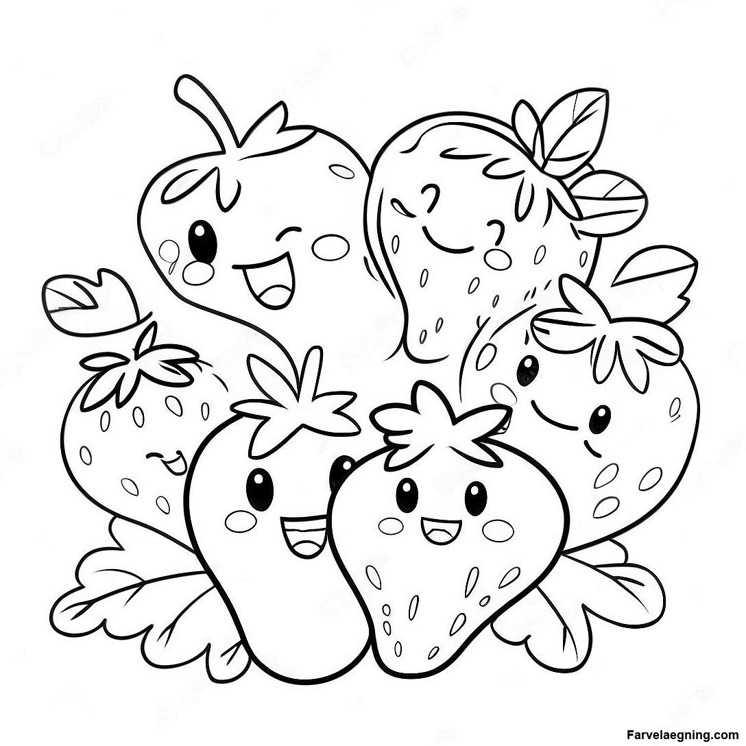 Download printbar PDF af Glad Jordbærfamilie Farvelægningsside