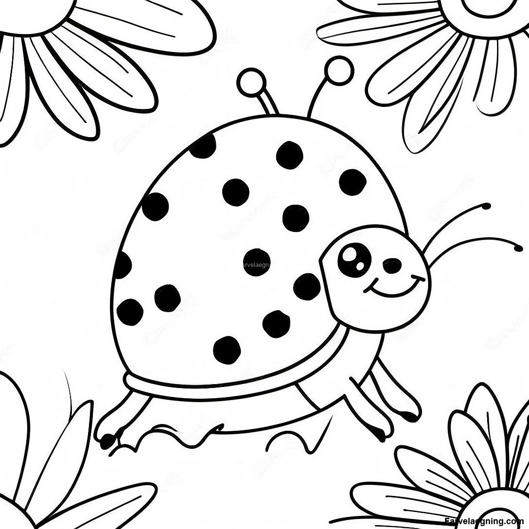 Download printbar PDF af Glad Marihøne Med Blomster Farvelægningsside