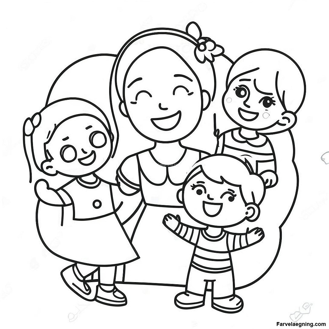Download printbar PDF af Glad Mor Og Børn Farvelægningsside