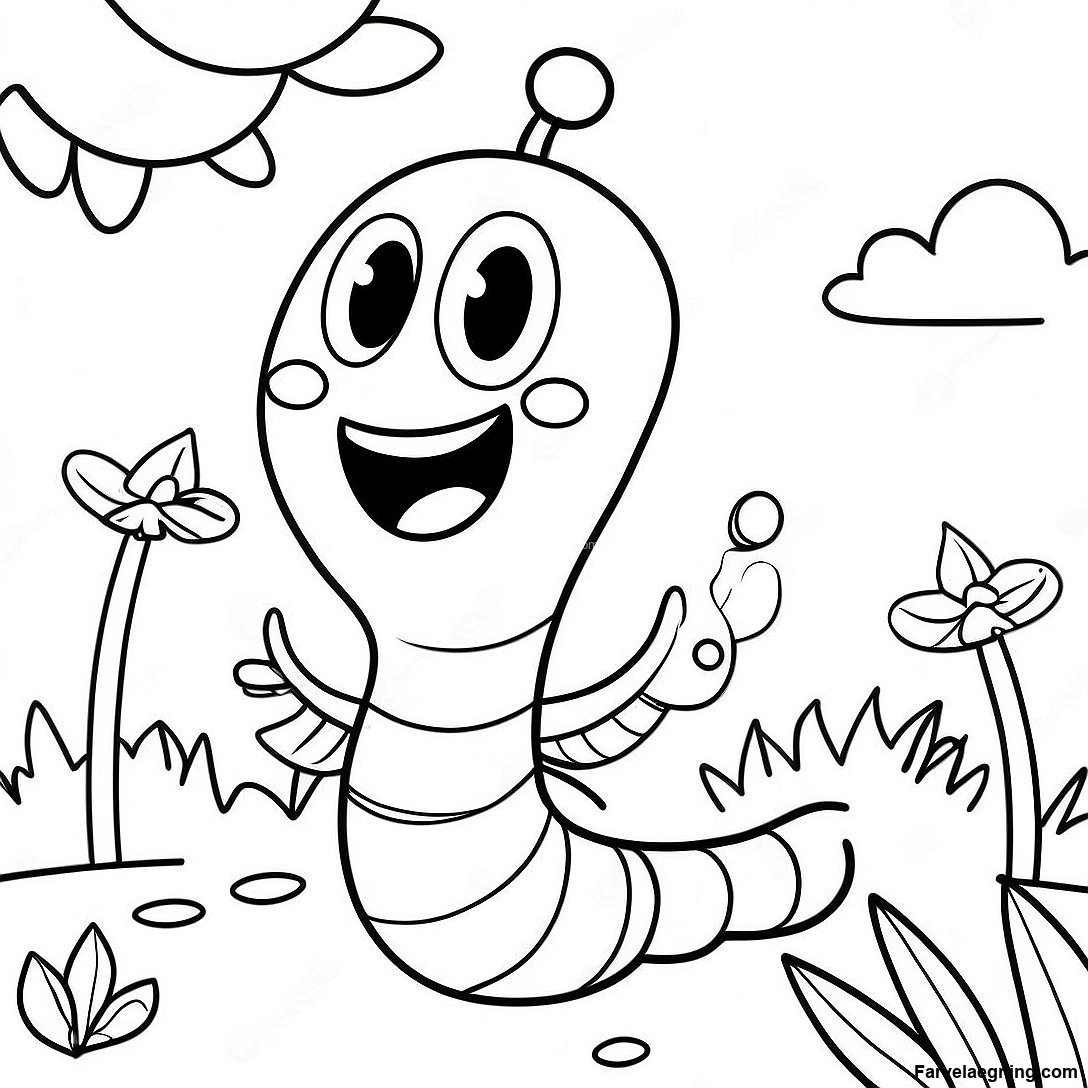 Download printbar PDF af Glad Orm I En Have Farvelægningsside