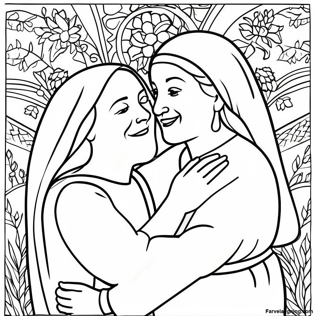 Download printbar PDF af Glade Ruth Og Naomi Omfavnelse Farvelægningssiden