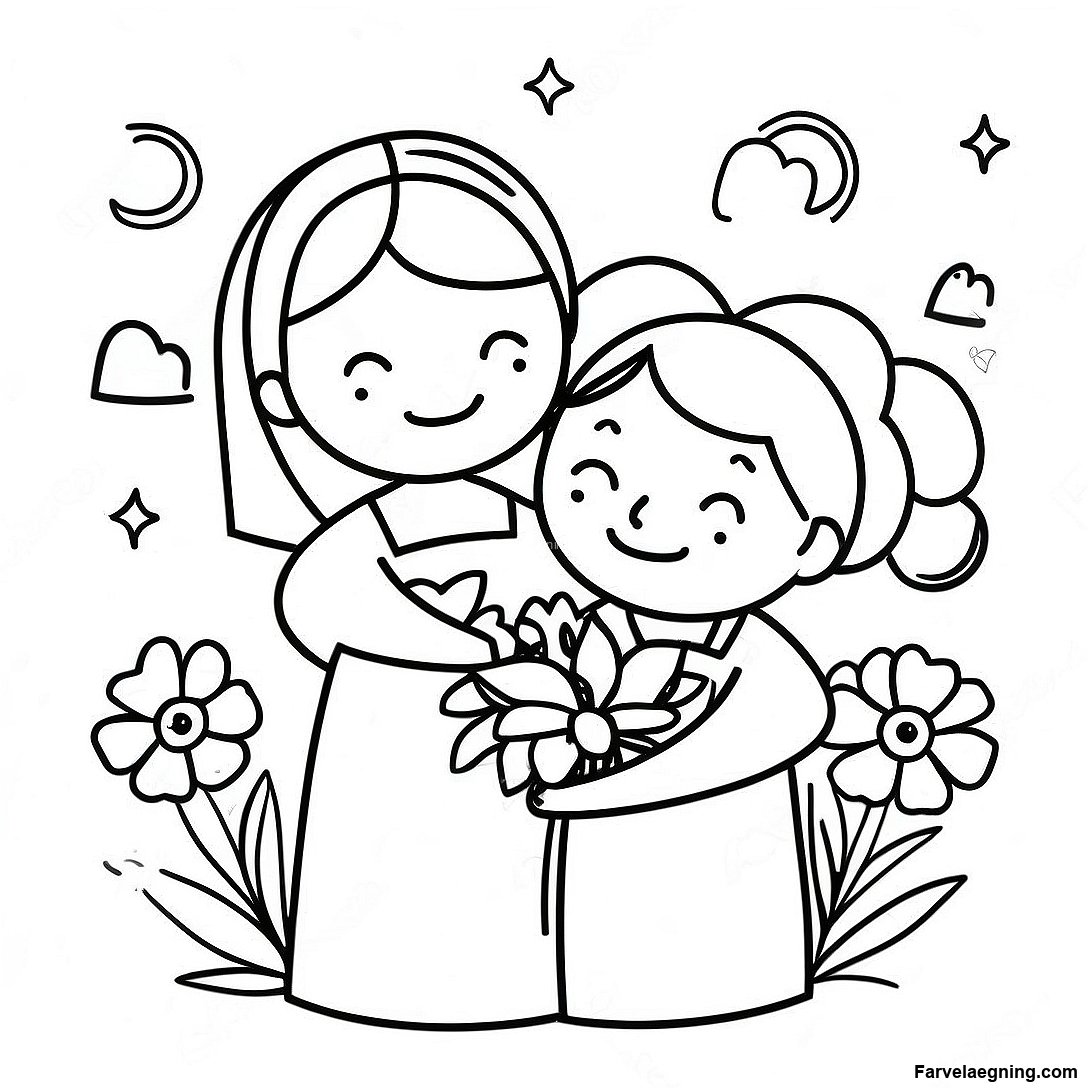 Download printbar PDF af Glædelig Mors Dags Fejring Farvelægningsside