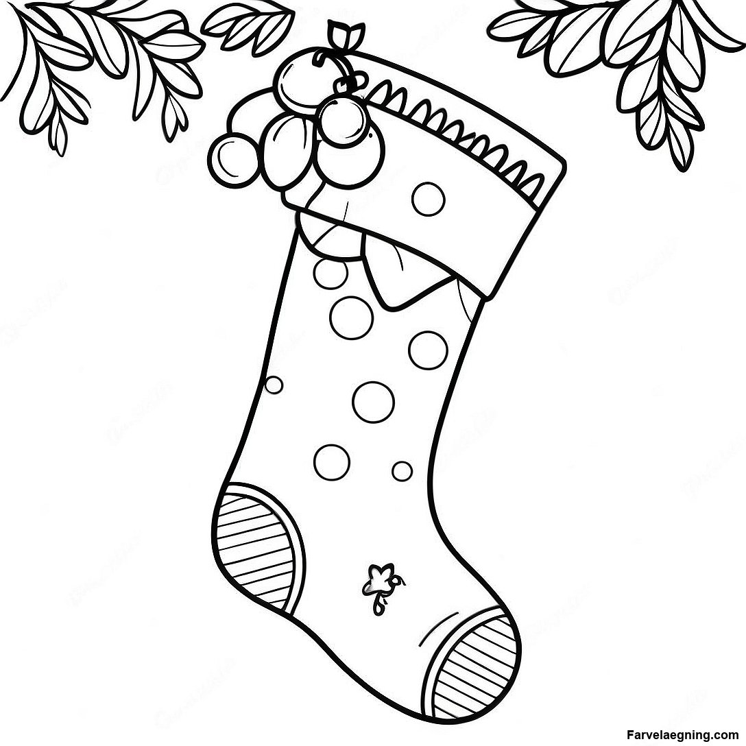Download printbar PDF af Glædelig Preppy Julestrømpe Farvelægningsside