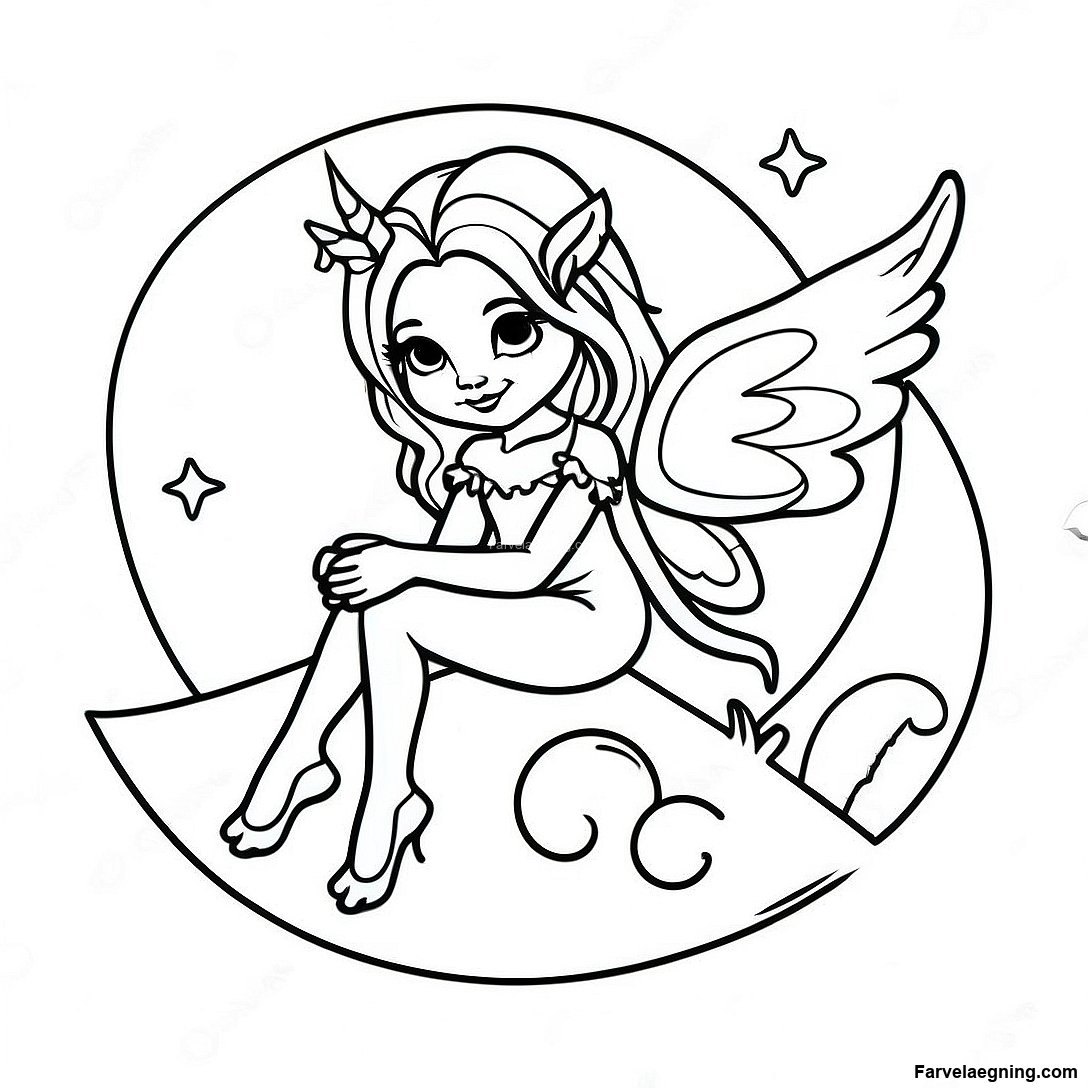 Download printbar PDF af Gothisk Mørk Fe Sidder På En Måne Farvelægningsside
