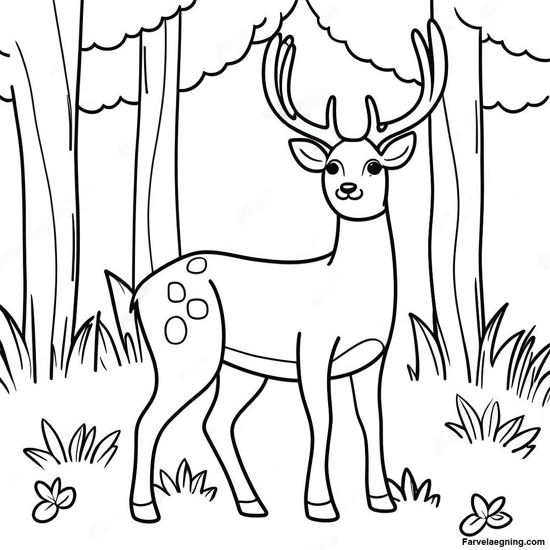 Download printbar PDF af Graciøs Hjort I Skoven Farvelægningsside
