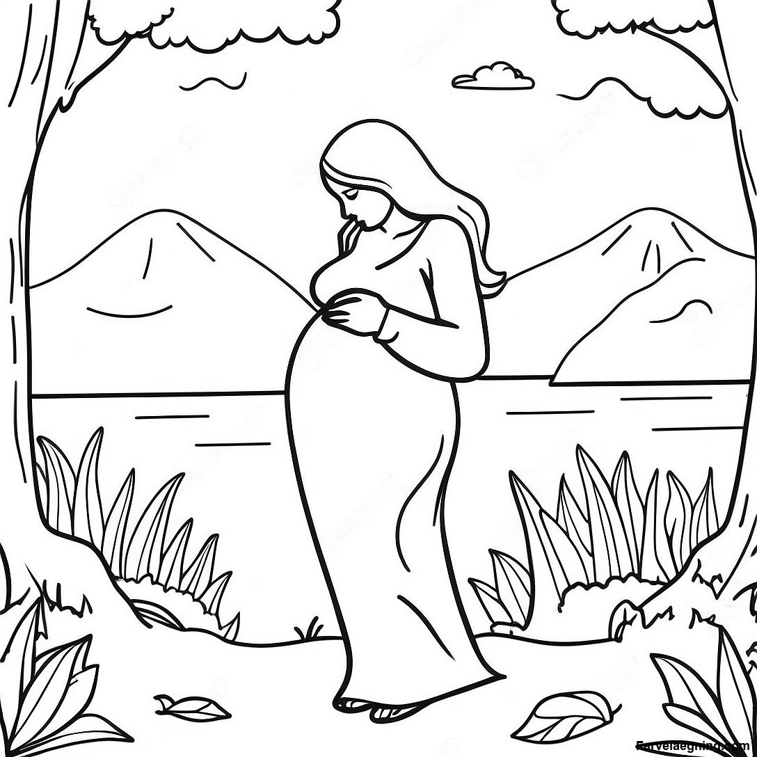 Gravid Kvinde I Naturen Farvelaegningsside