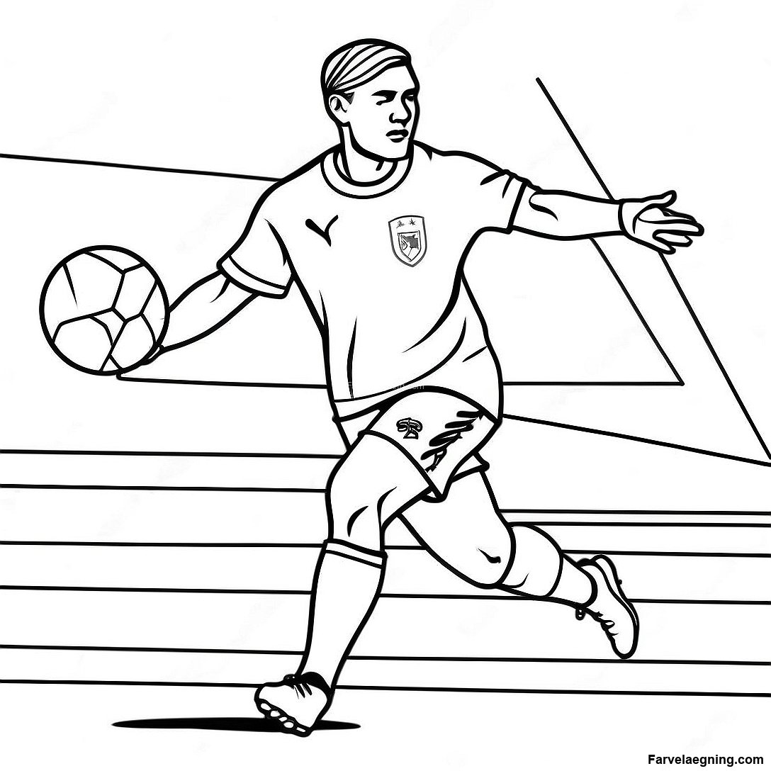 Download printbar PDF af Haaland Dribler Forbi Modstandere Farvelægningsside