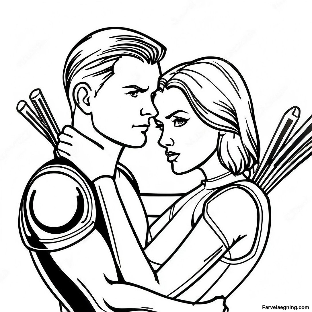 Download printbar PDF af Hawkeye Og Black Widow Farvelægningsside