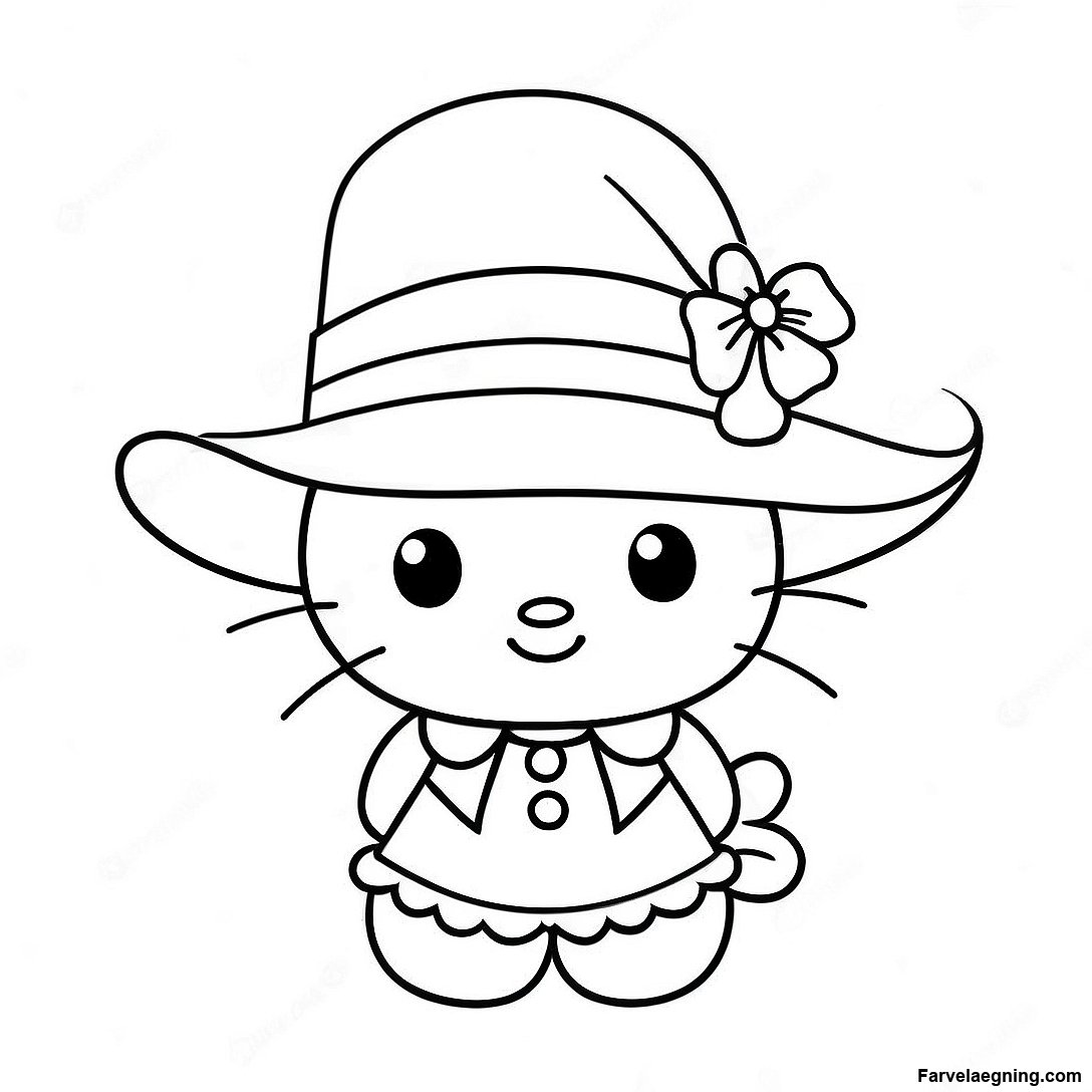 Download printbar PDF af Hello Kitty I En Pilgrimshat Farvelægningsside