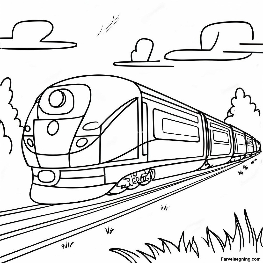 Download printbar PDF af Hurtigt Tog Der Racer Gennem Landskabet Farvelægningsside