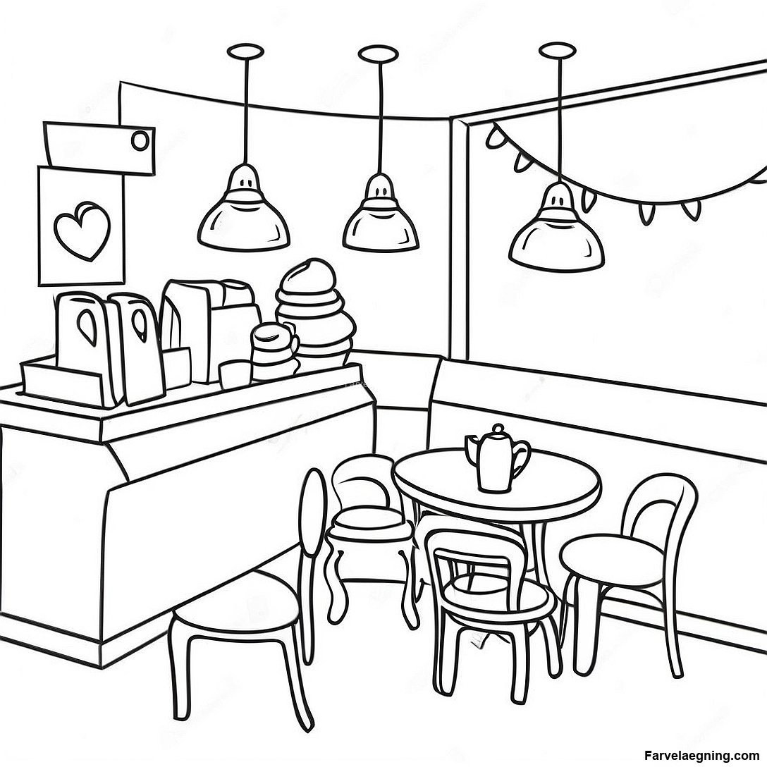 Download printbar PDF af Hyggelig Kaffebar Scene Farvelægningsside