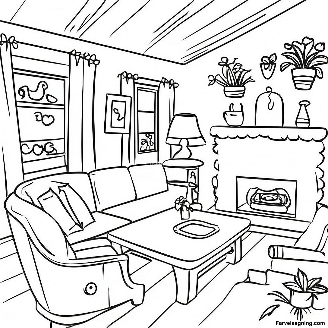 Hyggeligt Cottagecore Interiør Farvelægningsside