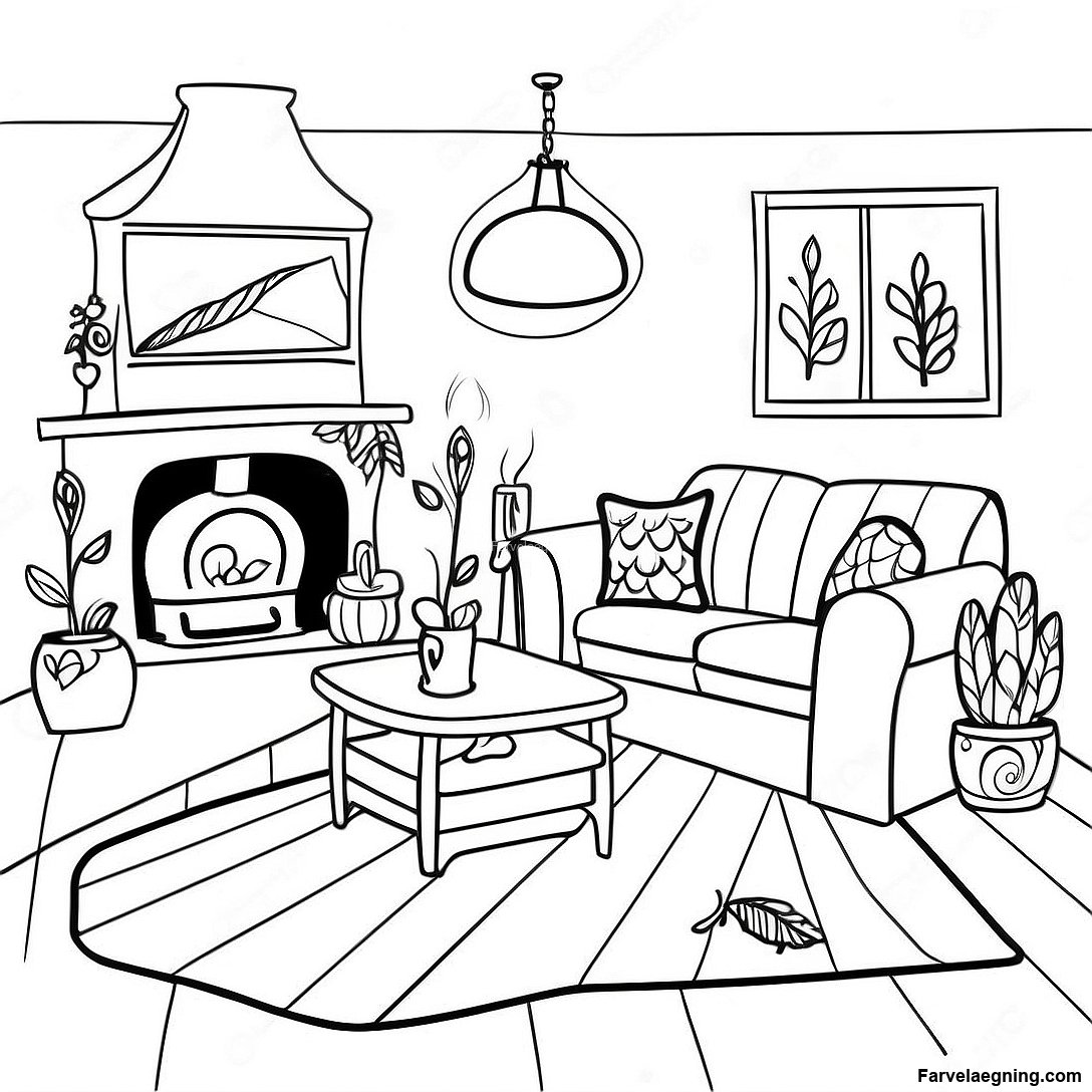 Hyggeligt Cottagecore Interiør Farvelægningsside