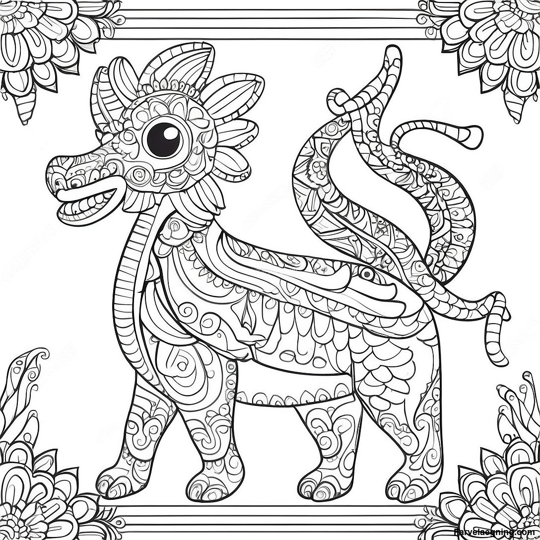 Download printbar PDF af Intrikate Alebrijes Design Farvelægningsside