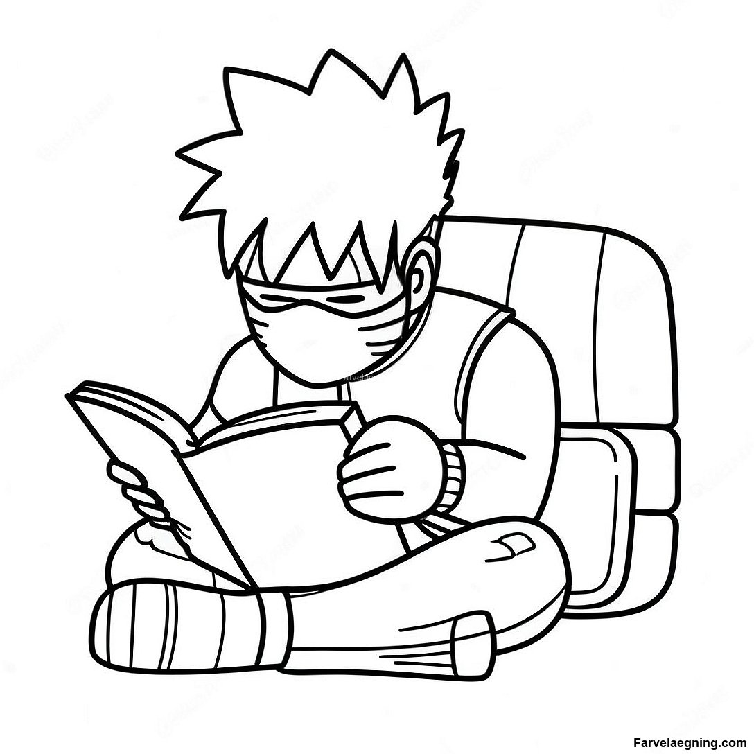 Download printbar PDF af Kakashi Hatake Læser En Bog Farvelægningsside