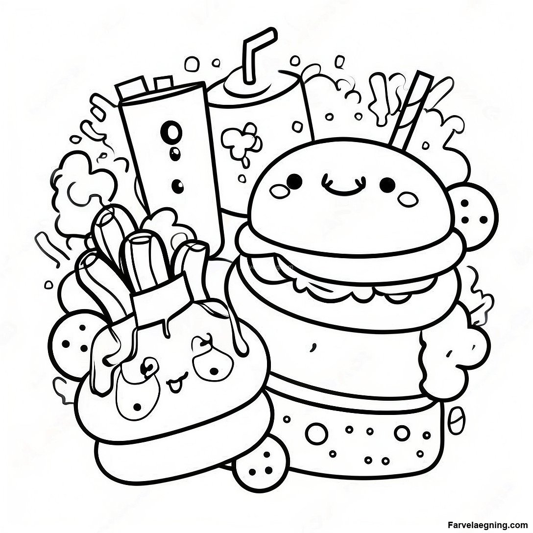 Download printbar PDF af Kawaii Junk Food Farvelægningsside