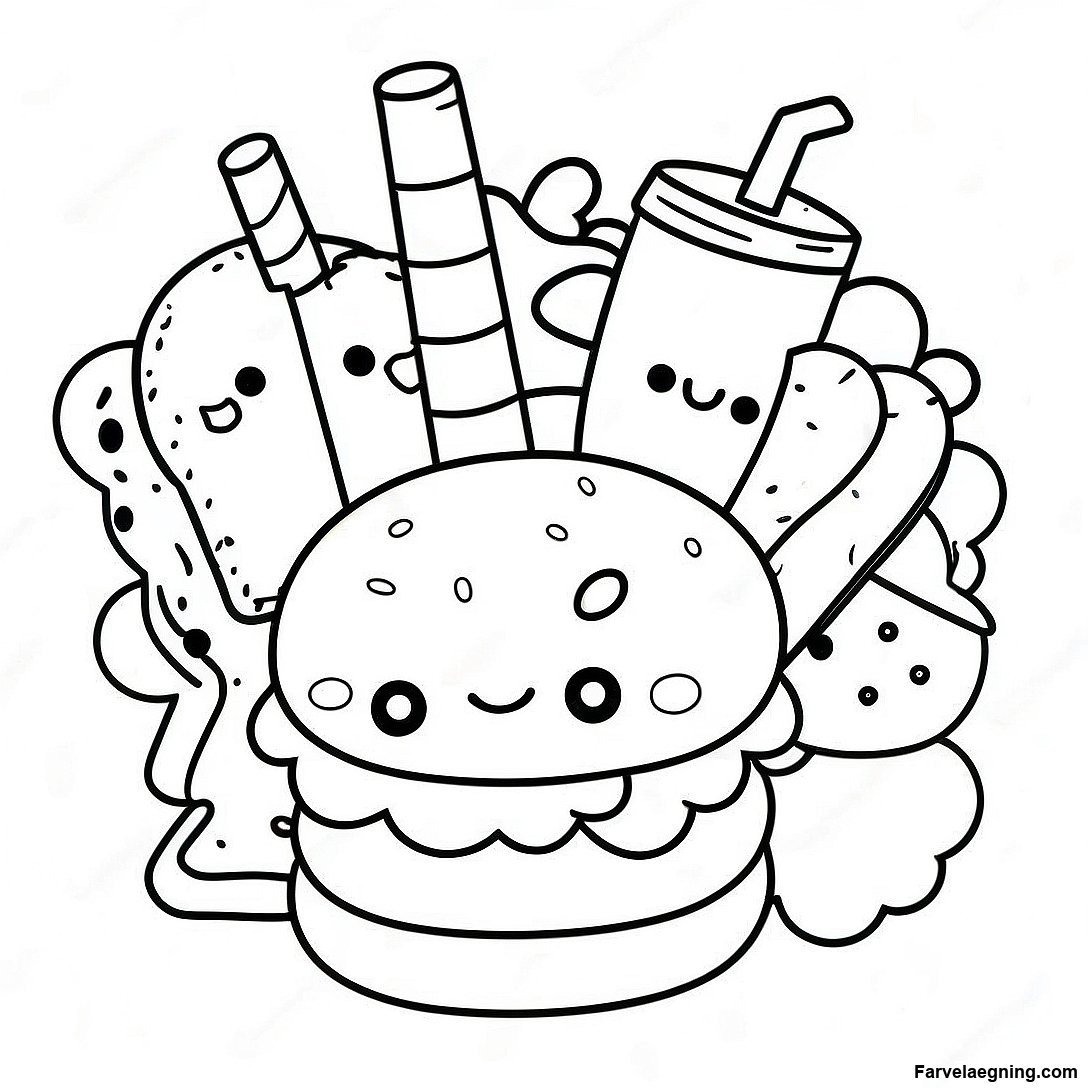 Download printbar PDF af Kawaii Junk Food Farvelægningsside