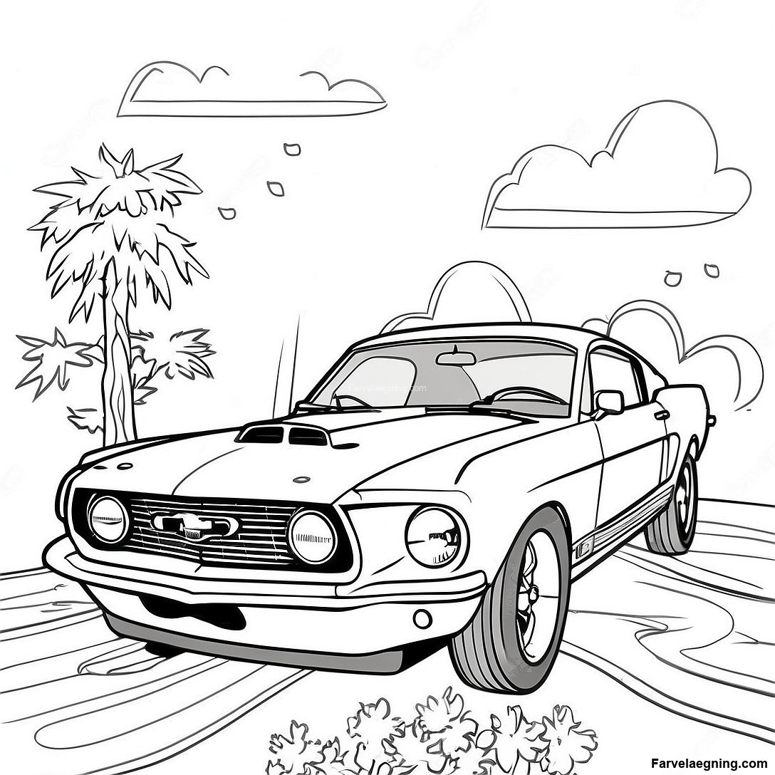 Download printbar PDF af Klassisk Mustang Gt Farvelægningsside
