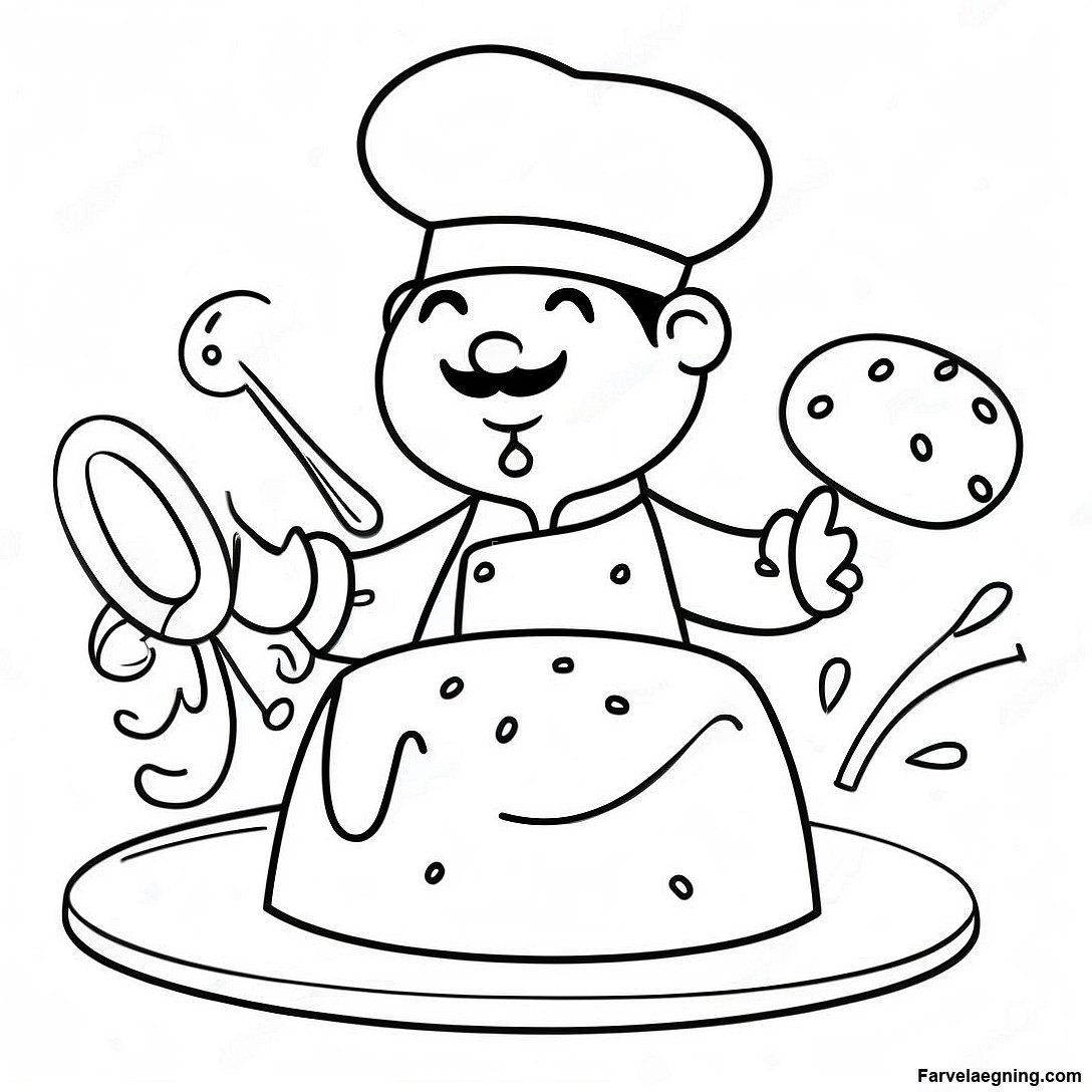 Download printbar PDF af Kok, Der Bager En Kage Farvelægningsside