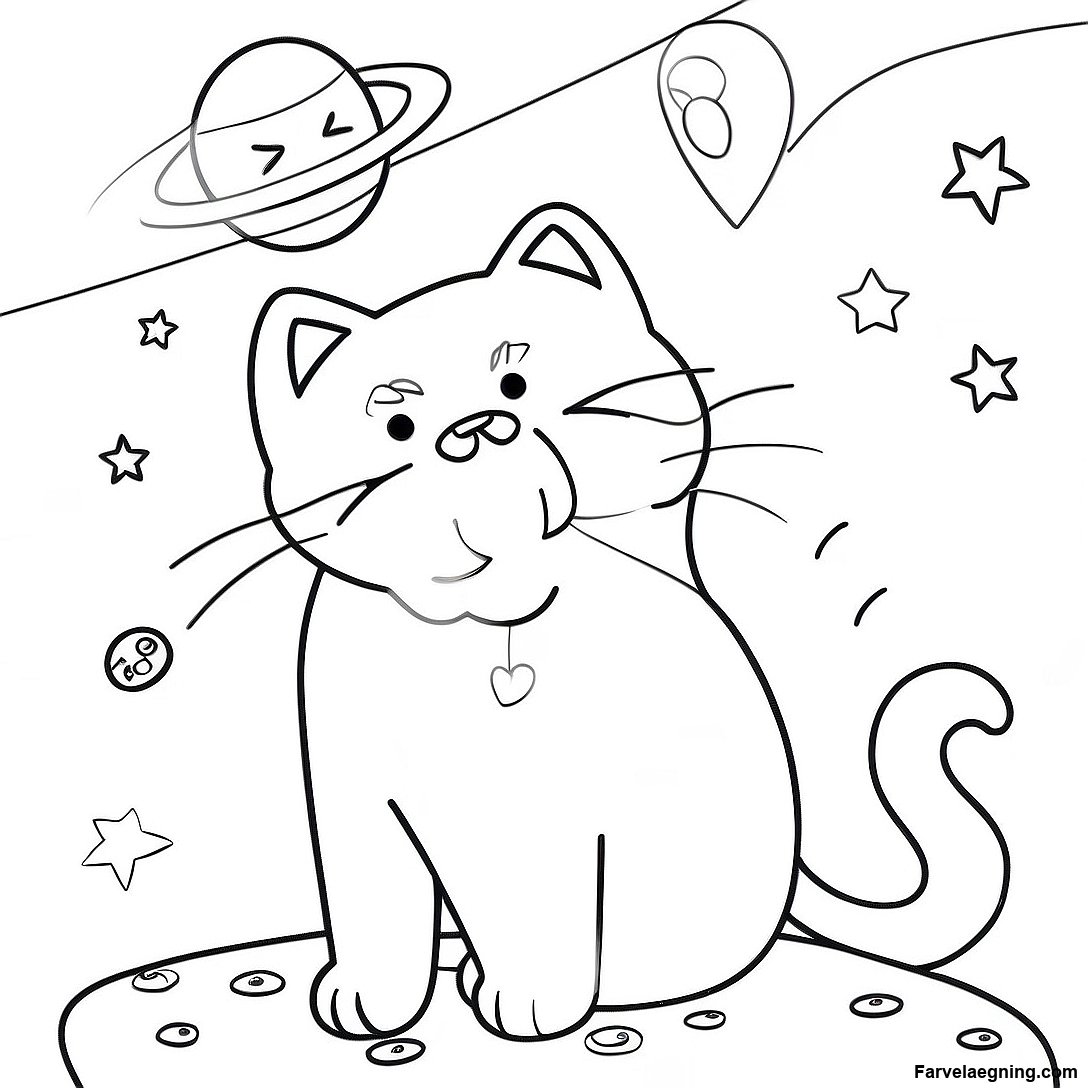 Download printbar PDF af Kosmisk Rum Kat Farvelægningsside