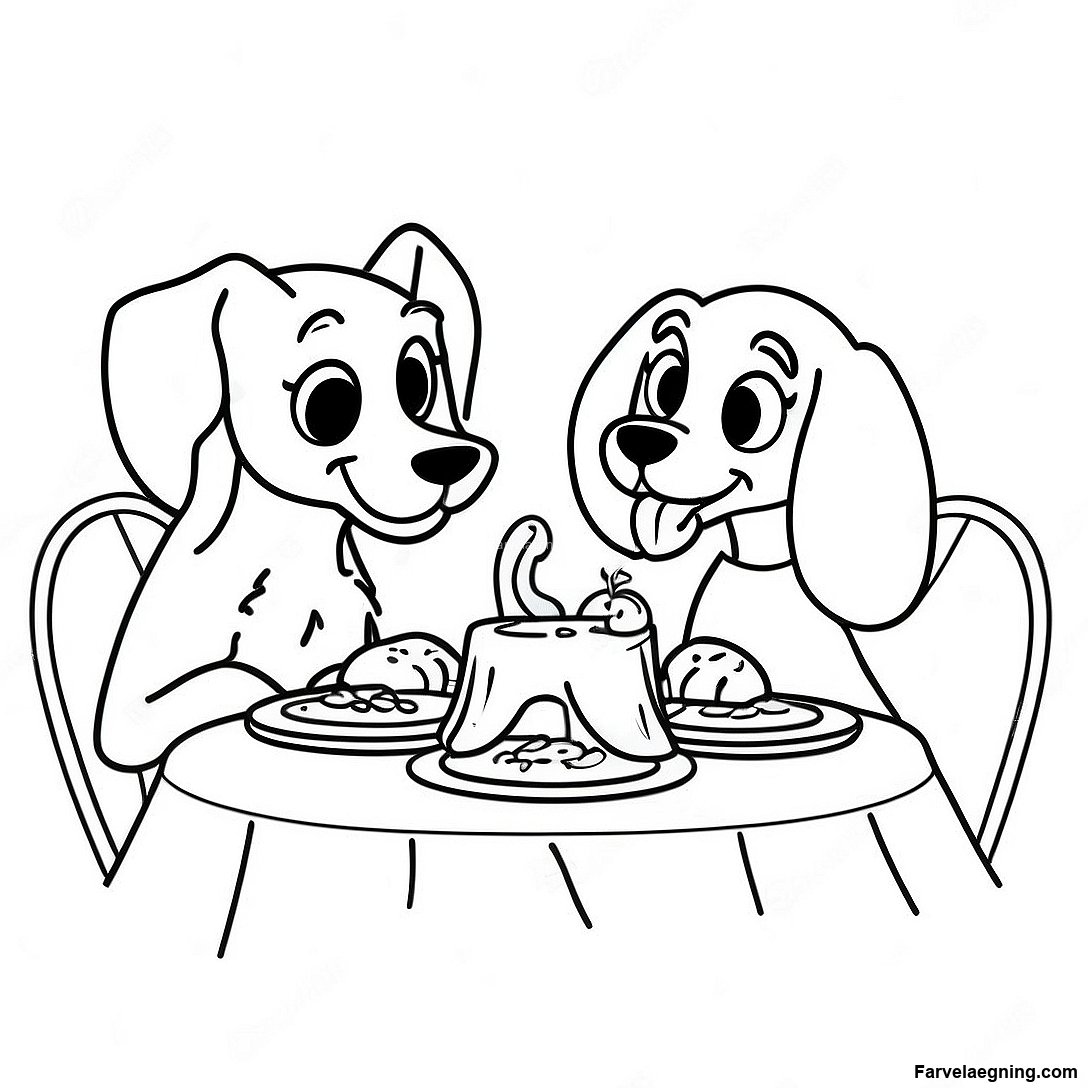 Download printbar PDF af Lady Og Vagabonden Romantisk Middag Farvelægningsside