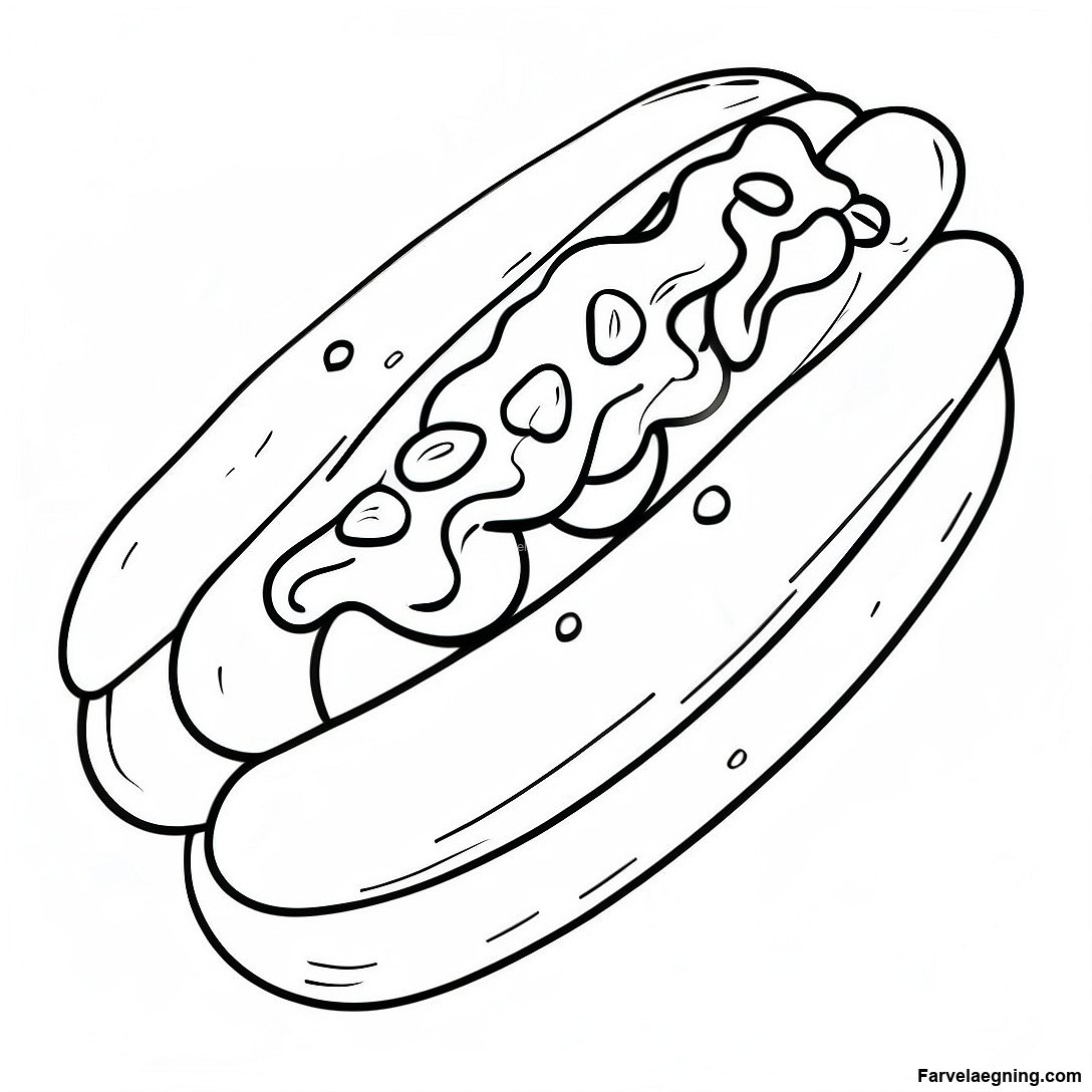 Download printbar PDF af Lækker Hotdog Med Ketchup Og Sennep Farvelægningsside