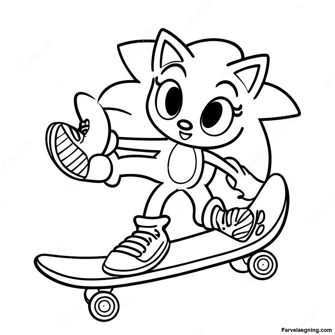 Download printbar PDF af Legesyg Creme Sonic På Skateboard Farvelægningsside
