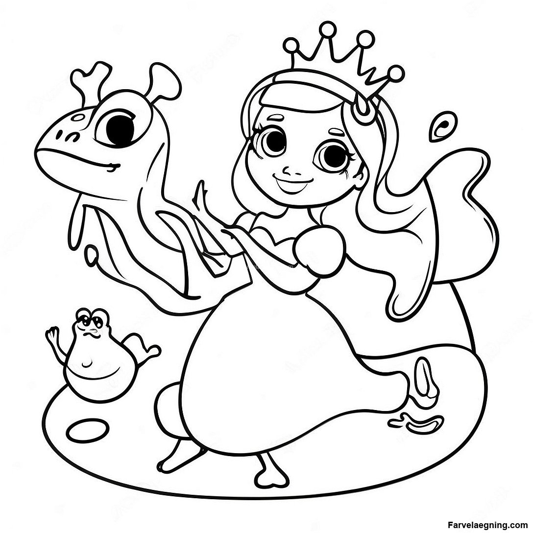 Download printbar PDF af Legesyg Prinsesse Og Frøvenner Farvelægningsside