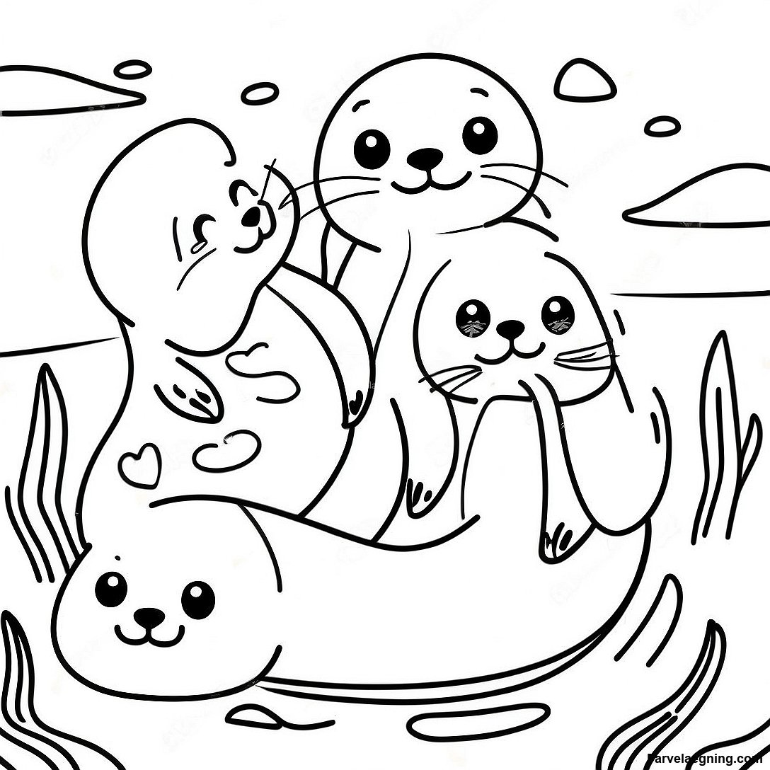 Download printbar PDF af Legesyg Sælhund Familie Farvelægningsside