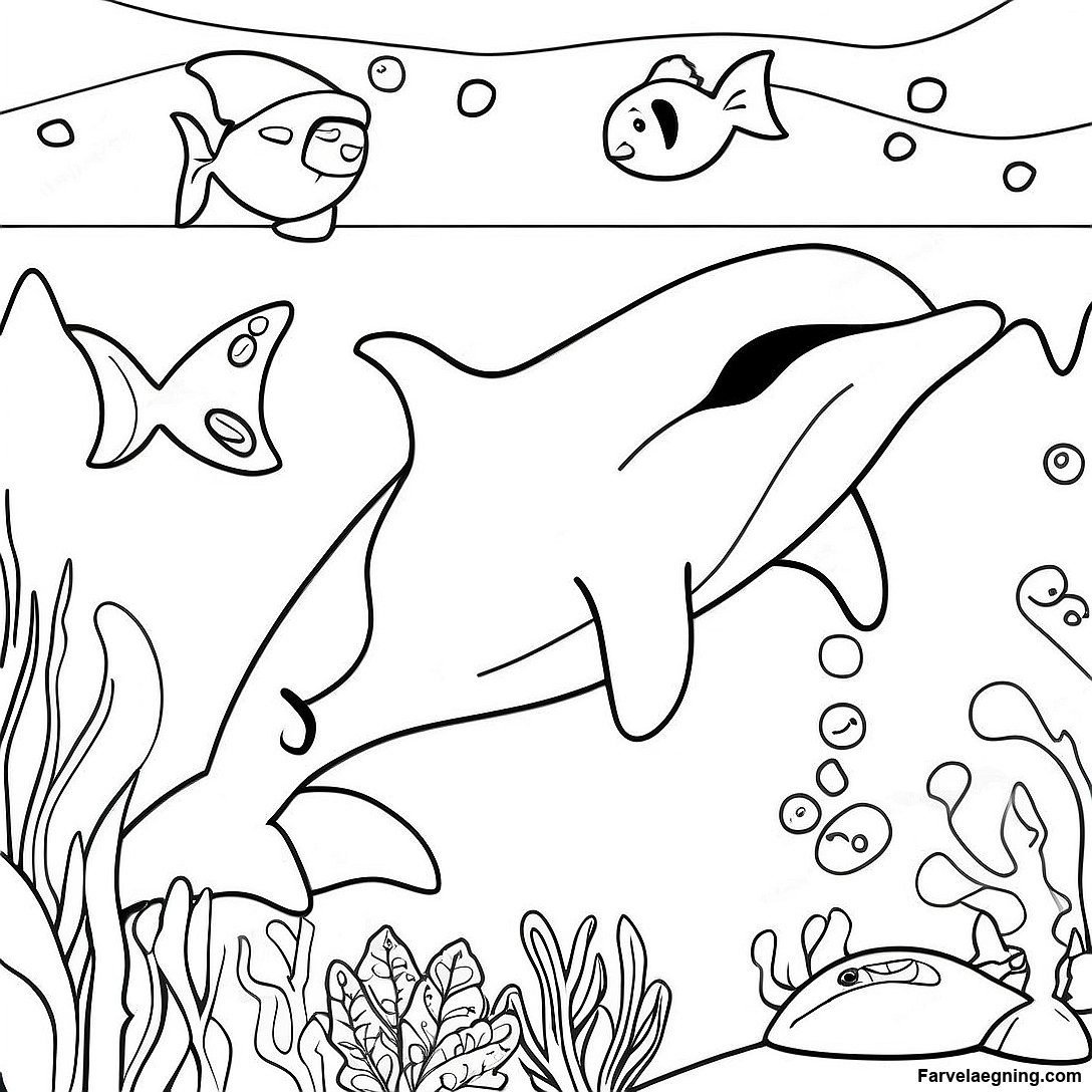 Download printbar PDF af Legesyg Spækhugger Svømmer Farvelægningsside