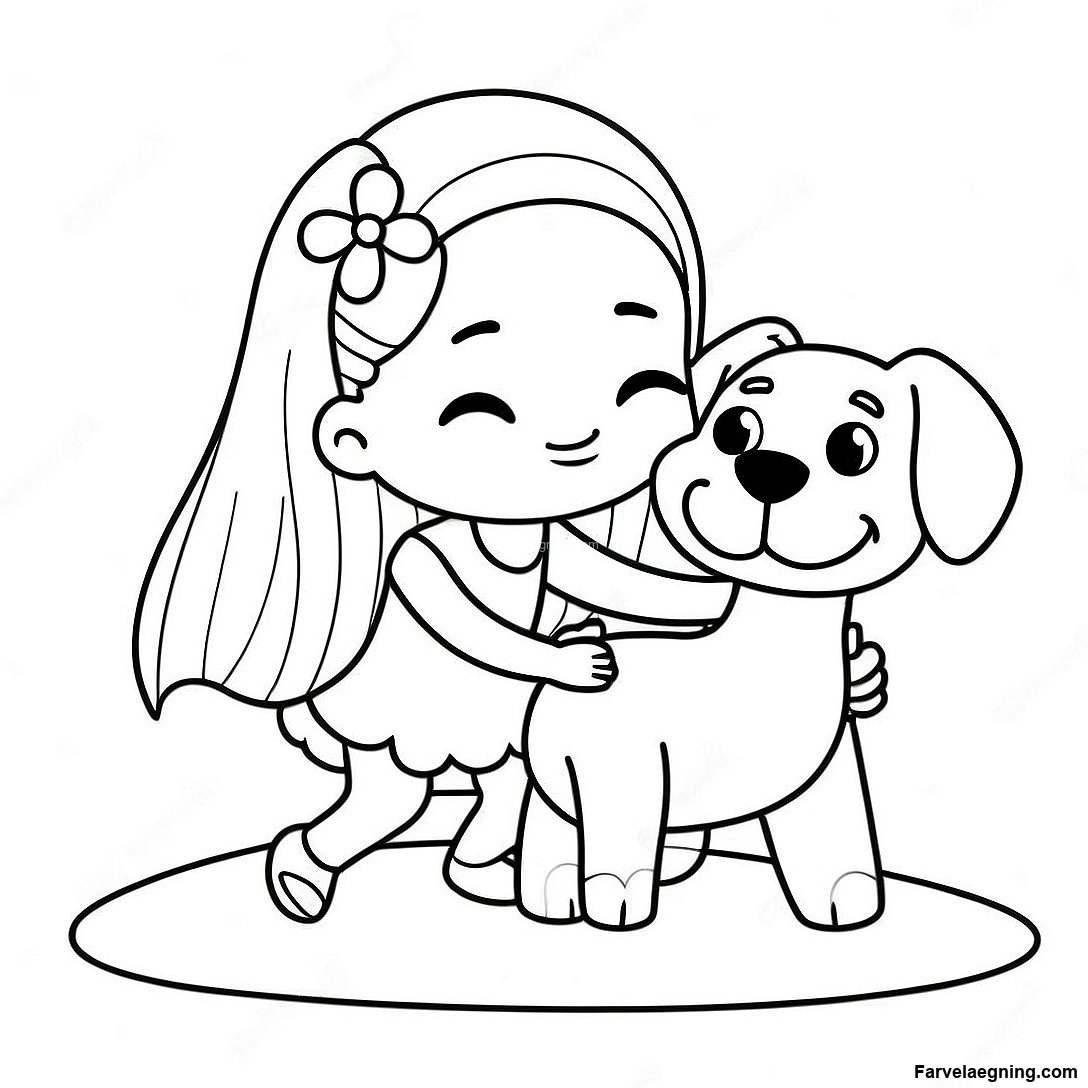 Download printbar PDF af Legesyg Store Søster Med En Hvalp Farvelægningsside