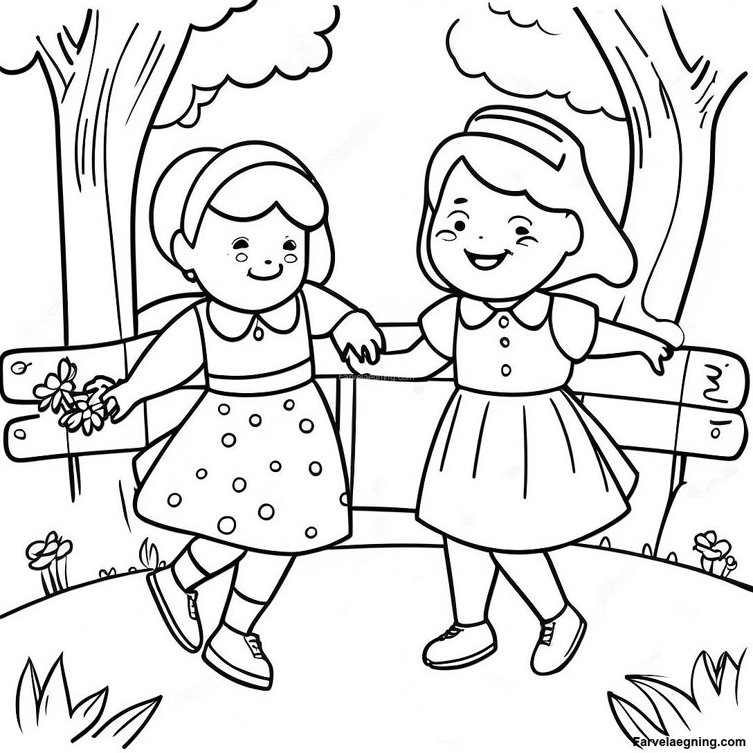 Download printbar PDF af Legesyg Trinity Og Madison I Parken Farvelægningsside
