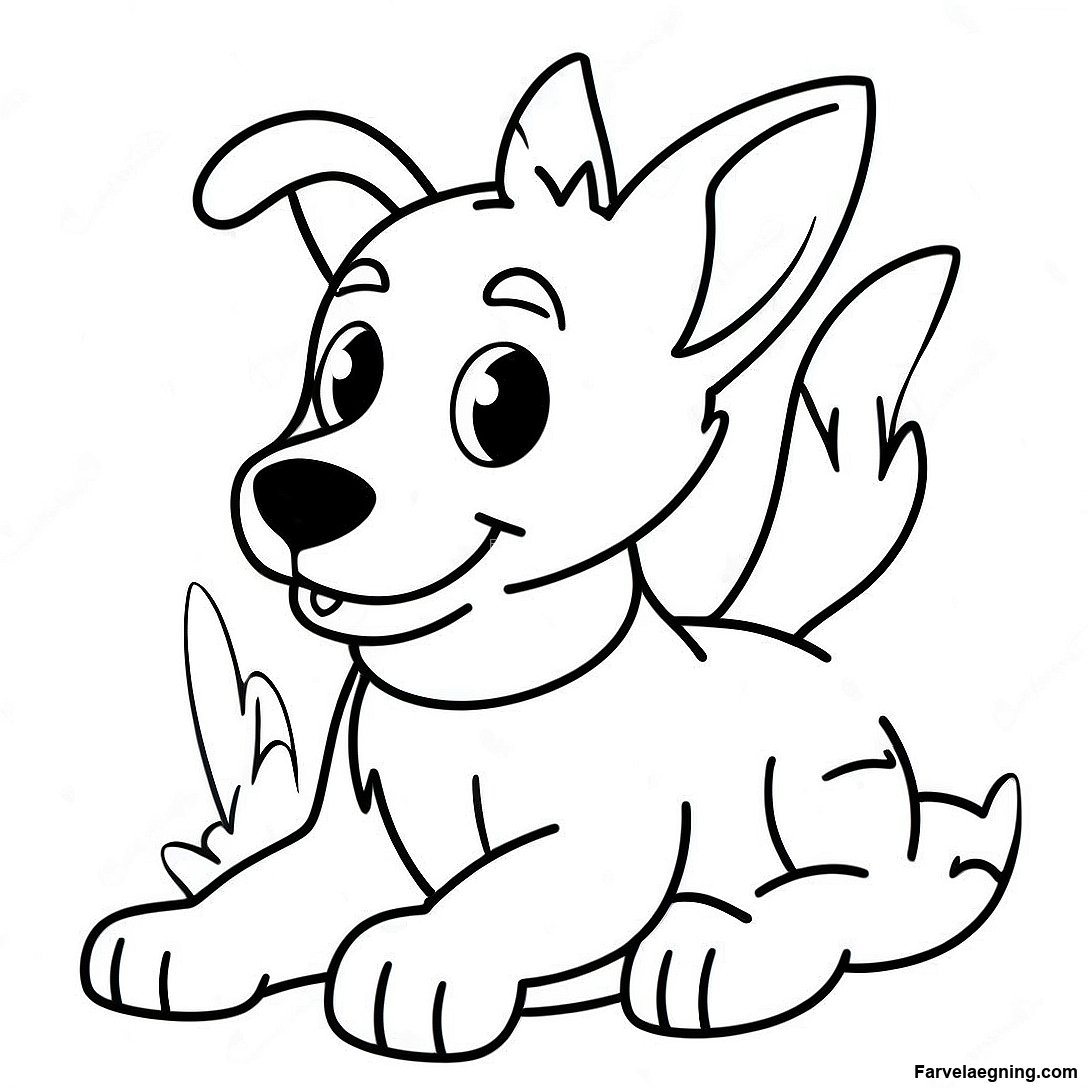 Download printbar PDF af Legesyg Tysk Hyrdehvalp Farvelægningsside