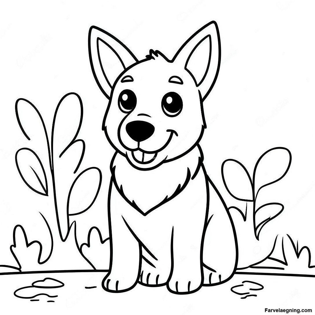 Download printbar PDF af Legesyg Tysk Hyrdehvalp Farvelægningsside