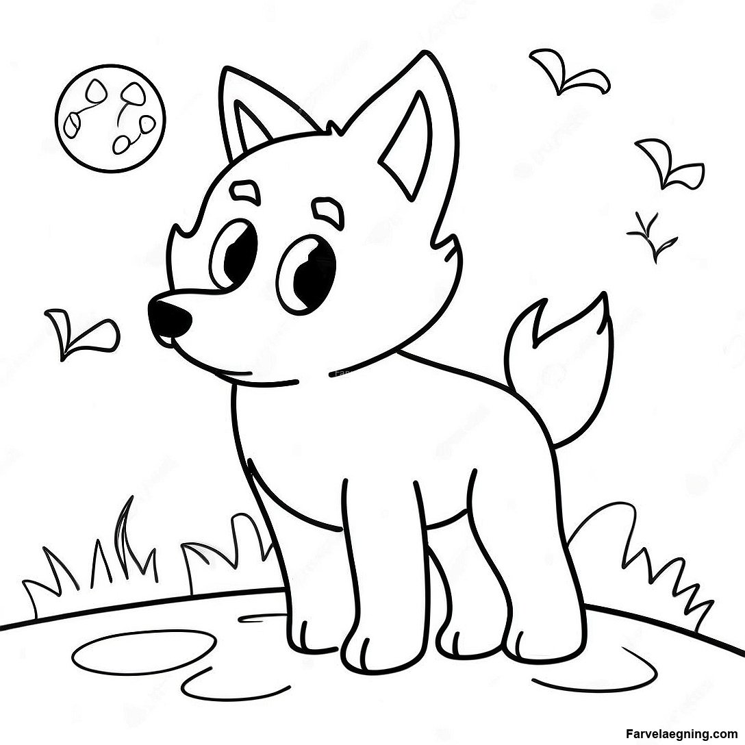 Download printbar PDF af Legesyg Ulvunge Under Måneskin Farvelægningsside