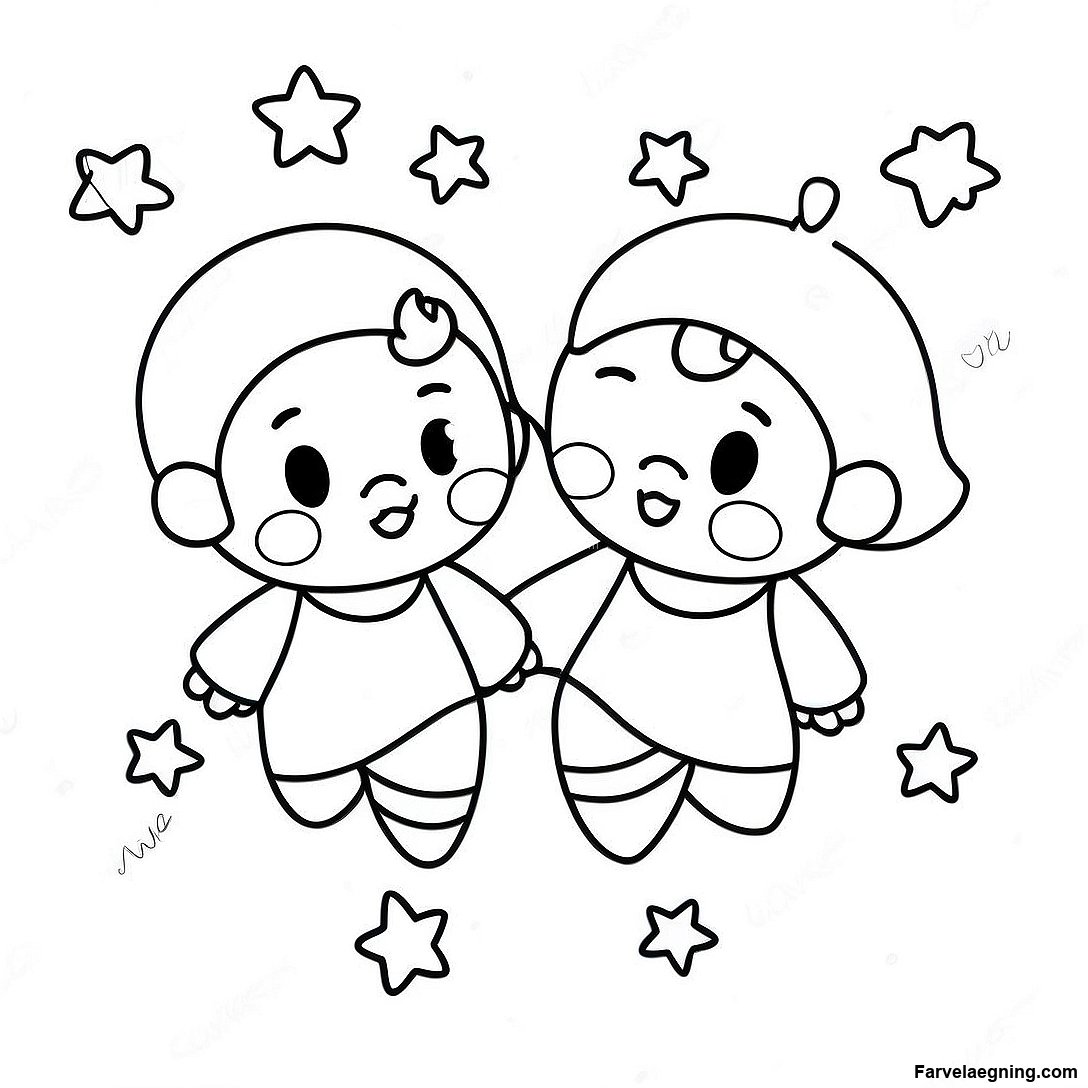 Download printbar PDF af Lille Tvillingestjerner I Drømmende Himmel Farvelægningsside