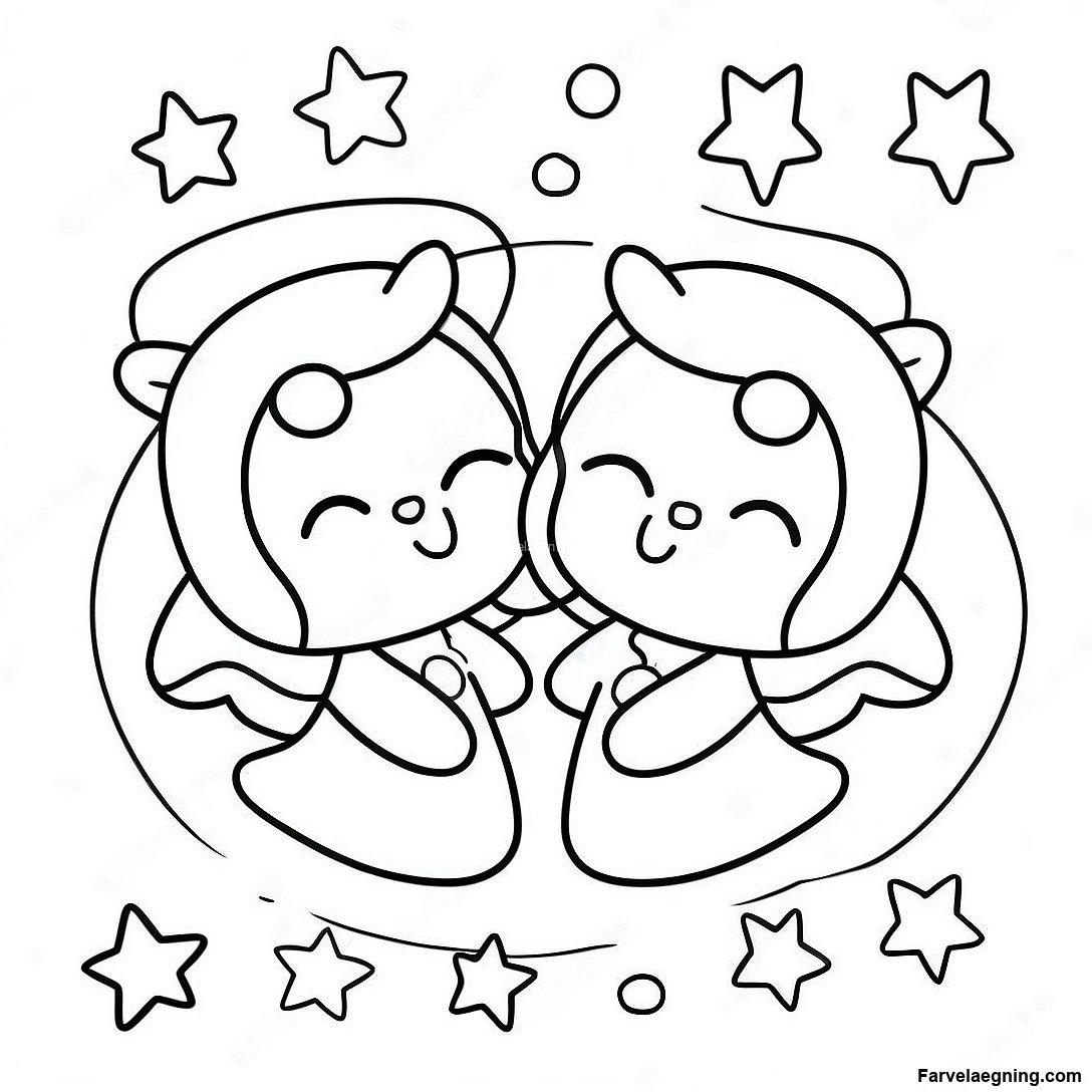 Lille Tvillingestjerner Med Magiske Stjerner Farvelaegningsside 79283 21502