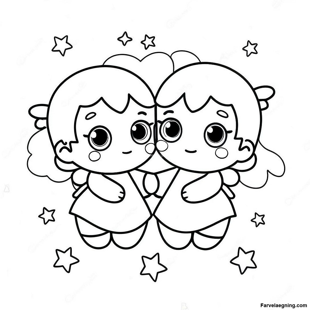 Lille Tvillingestjerner Med Magiske Stjerner Farvelaegningsside 79283 21503