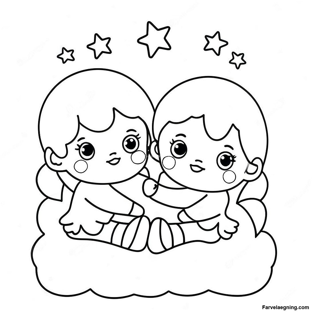 Download printbar PDF af Lille Tvillingestjerner Med Magiske Stjerner Farvelægningsside