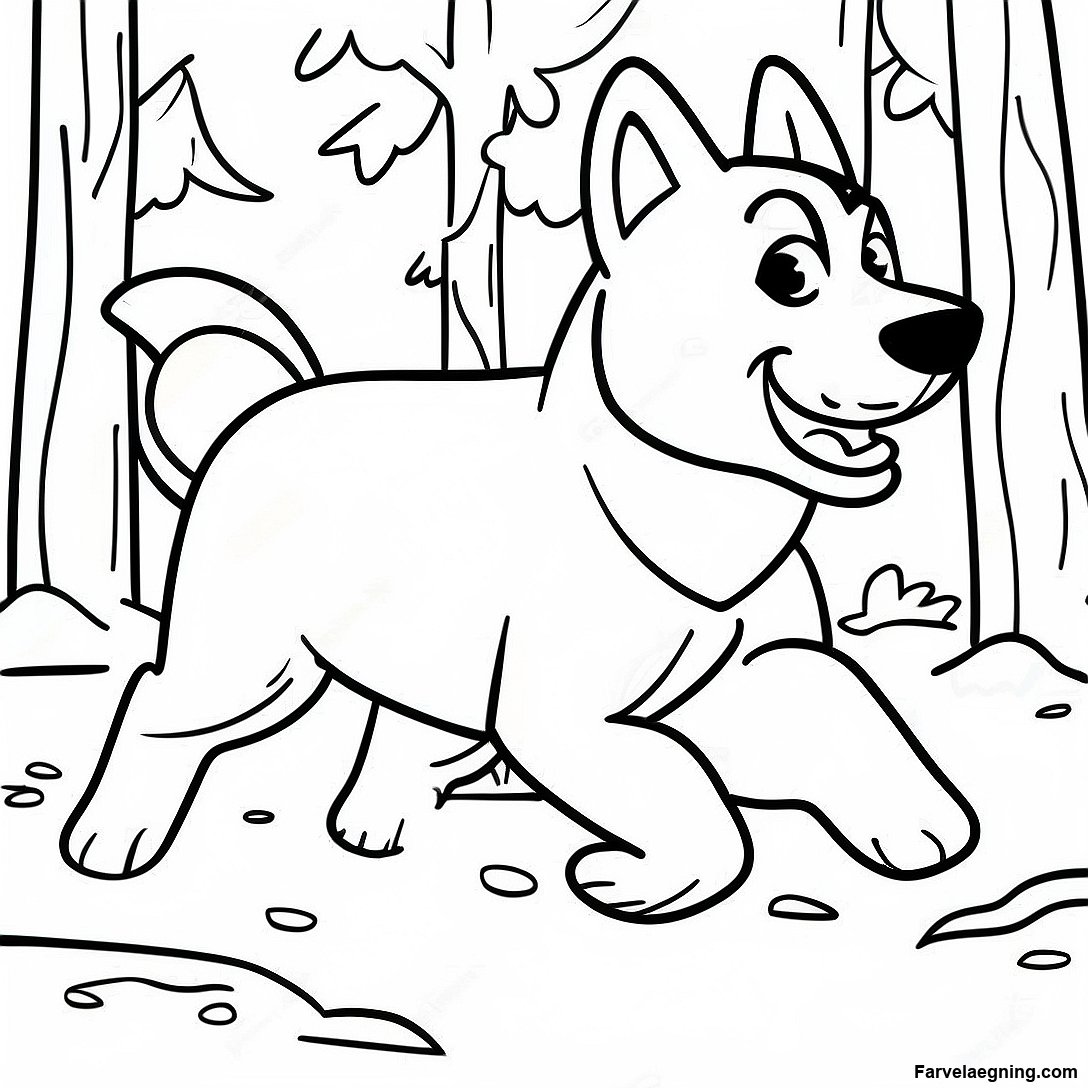 Download printbar PDF af Løber Husky I Skoven Farvelægningsside