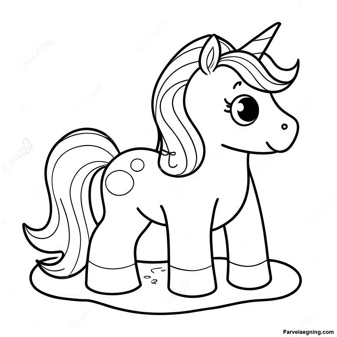 Sød Alicorn med Funklende Manke Farvelægningsside