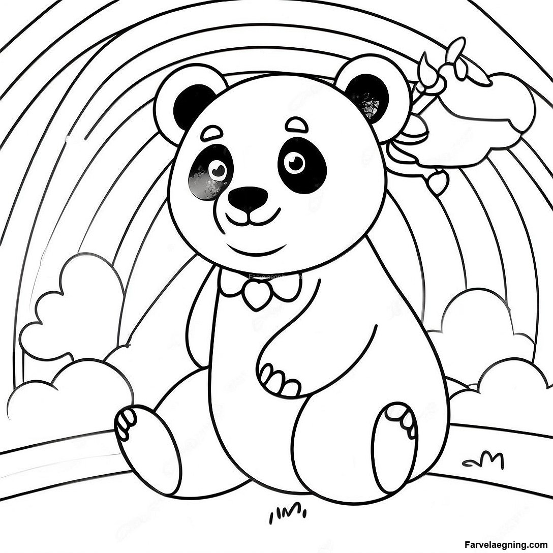 Download printbar PDF af Majestætisk Enhjørning Panda Med Regnbuebaggrund Farvelægningsside