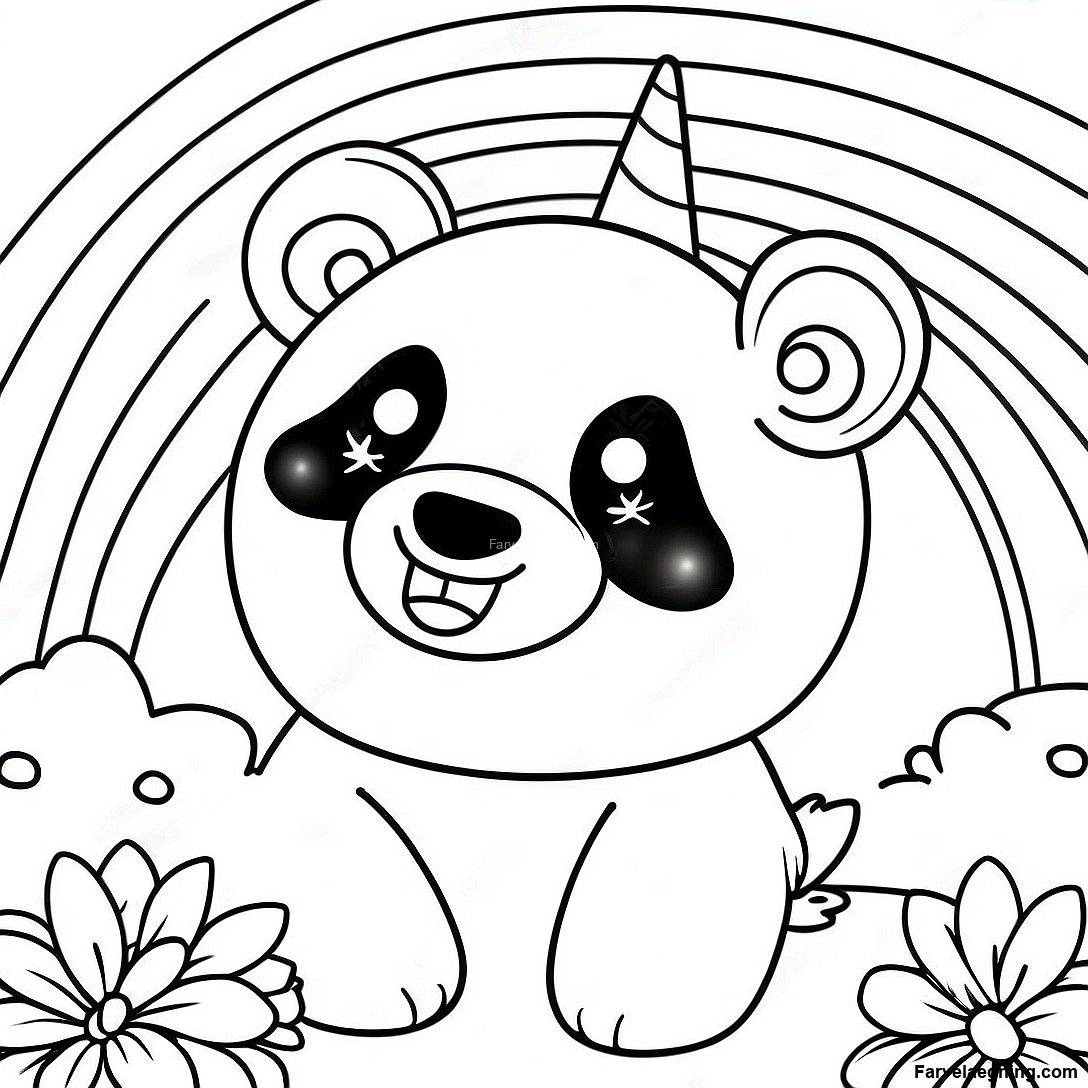 Download printbar PDF af Majestætisk Enhjørning Panda Med Regnbuebaggrund Farvelægningsside