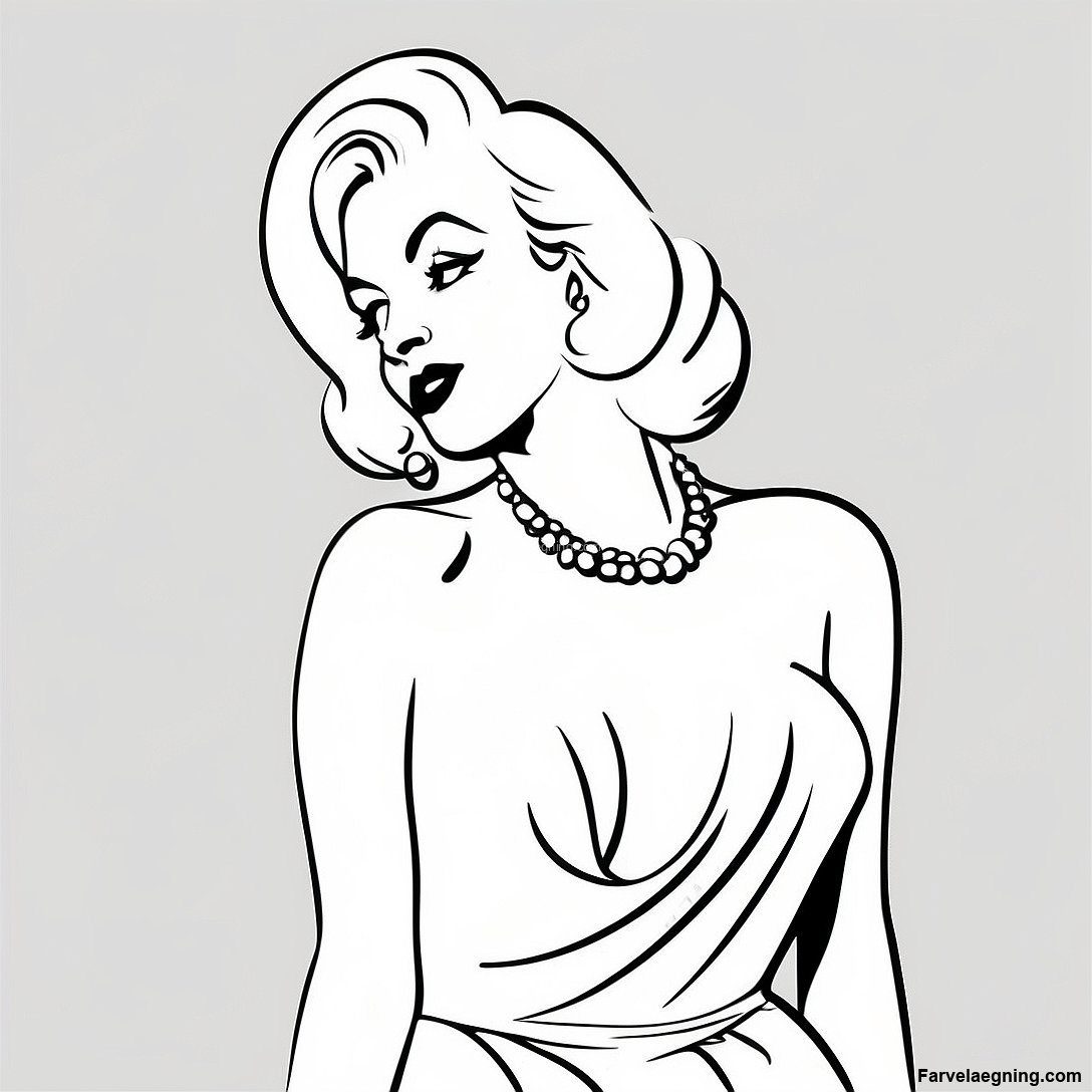 Download printbar PDF af Marilyn Monroe I Glamourøs Kjole Farvelægningsside