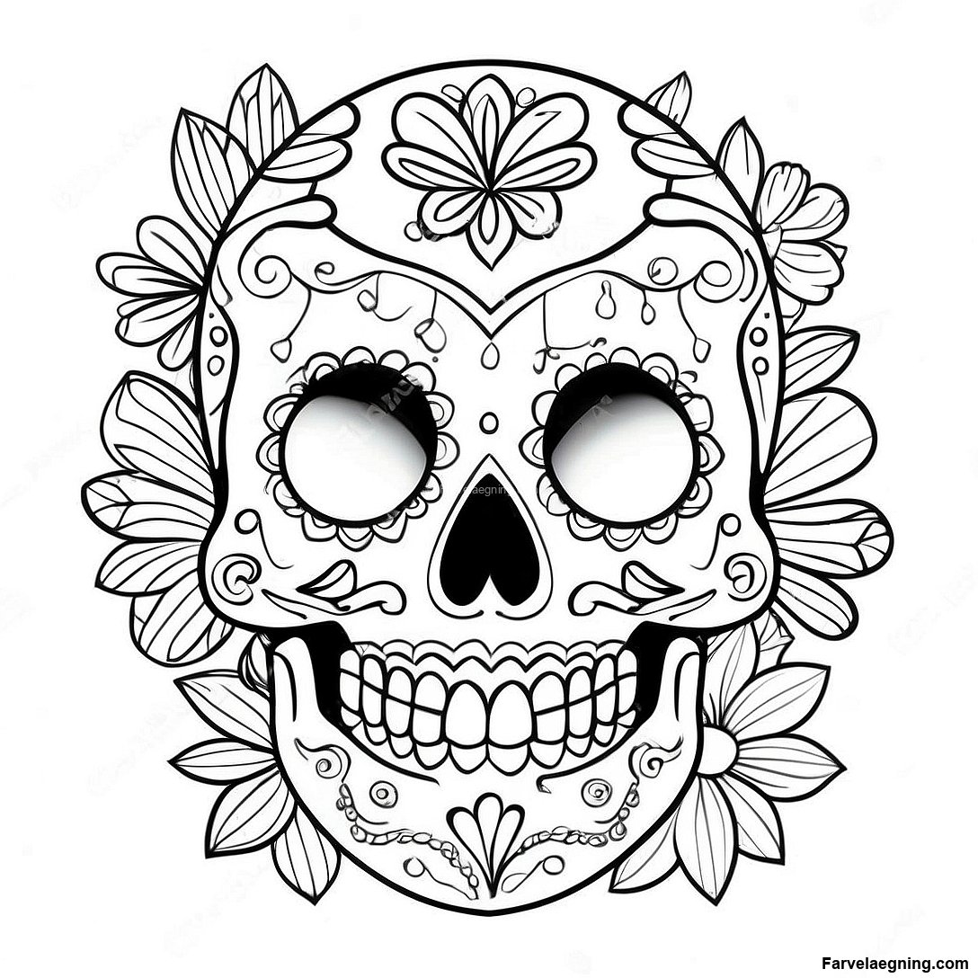 Download printbar PDF af Mexicansk Sukkerkranium Farvelægningsside