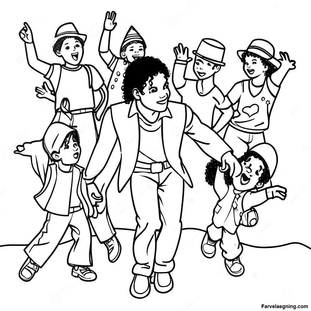 Download printbar PDF af Michael Jackson Med Børn Farvelægningsside