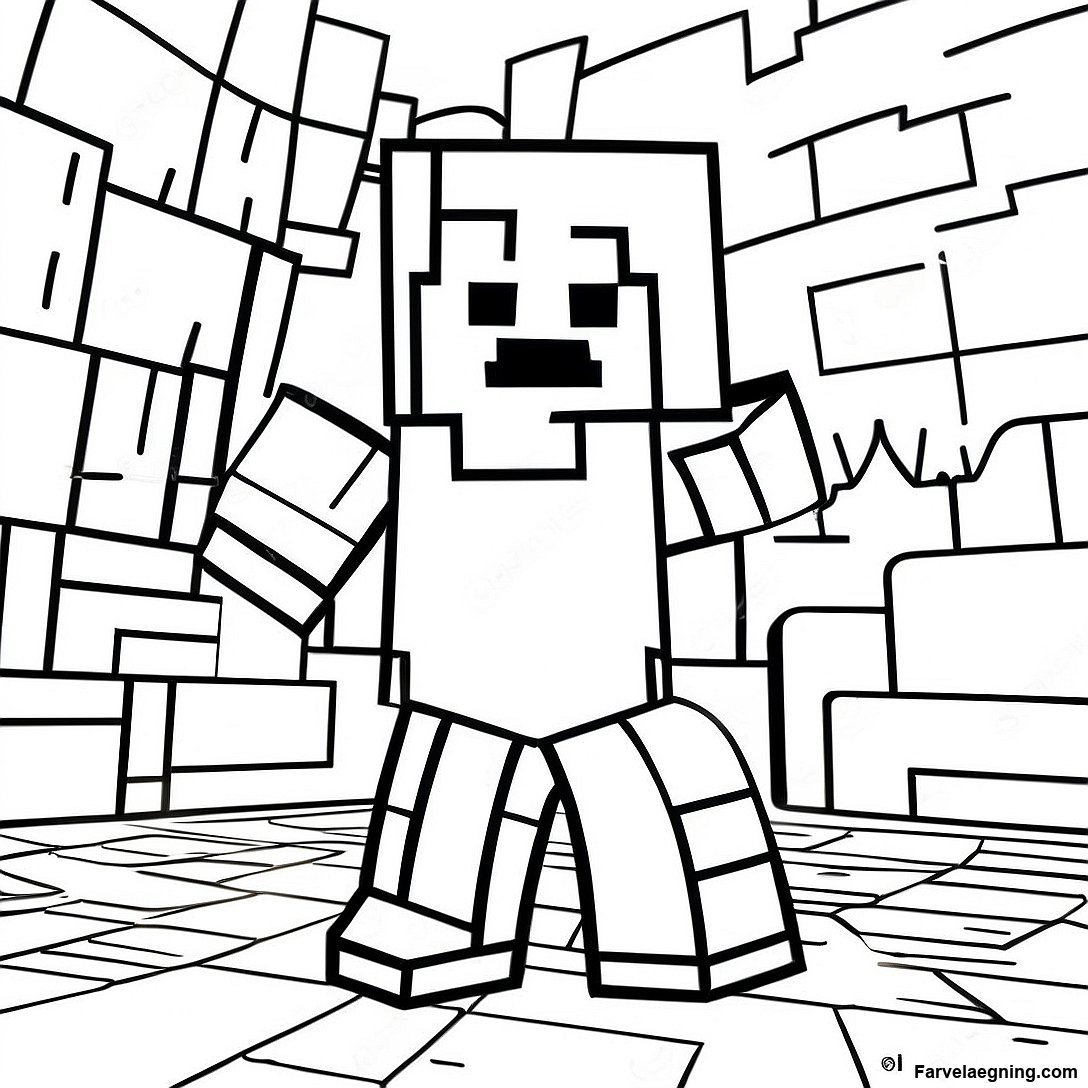 Download printbar PDF af Minecraft Steve Farvelægningsside