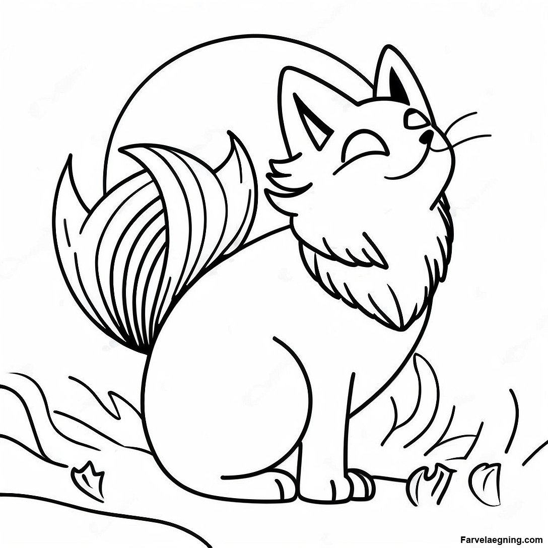 Mystisk Kitsune Under Manen Farvelaegningsside